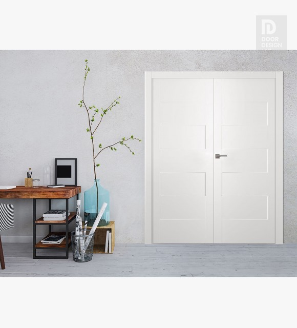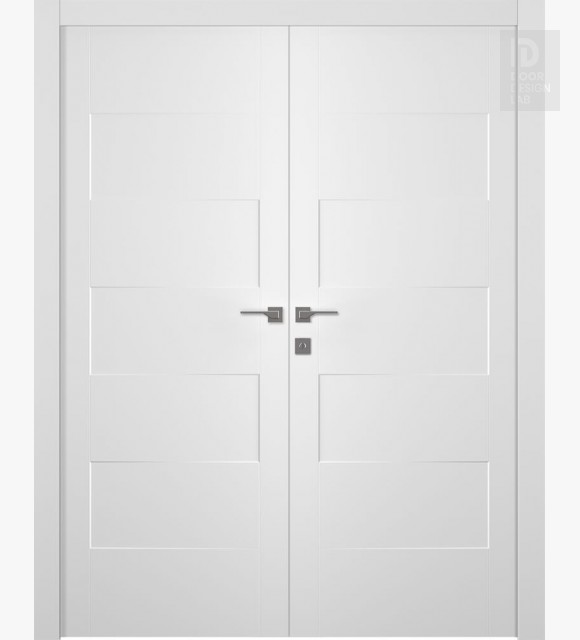5 Panel Modern Shaker Snow White Modern Interior Double Swing Doors by Belldinni