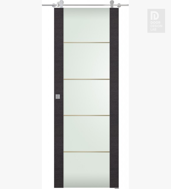 Avanti 202 4H Gold Strips Vetro Black Apricot Modern Interior Barn Door by Belldinni