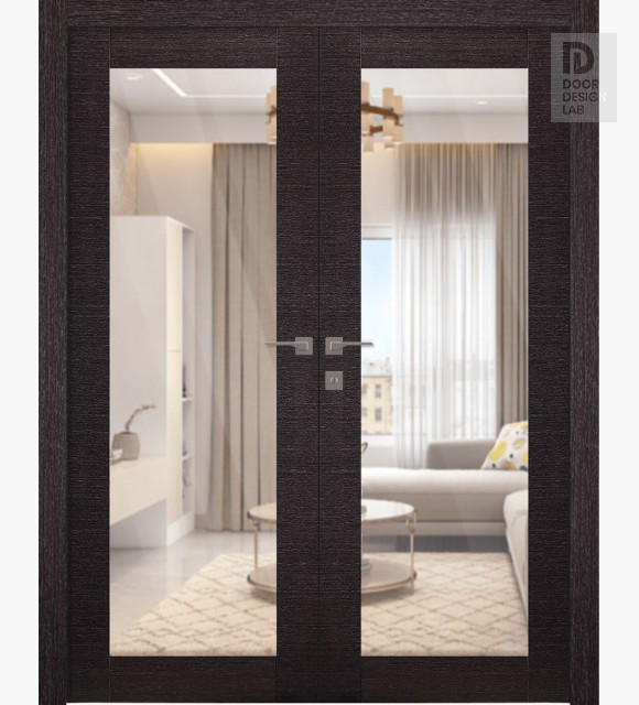 Avanti 207 Clear Vetro Black Apricot Modern Interior Double Swing Doors by Belldinni