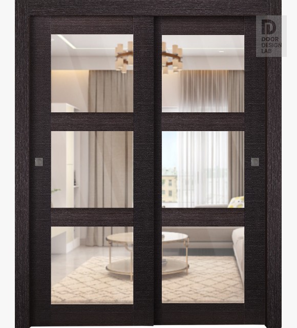 Avanti 3 Lite Clear Vetro Black Apricot Modern Interior Bypass Doors by Belldinni
