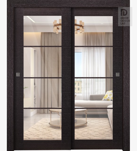 Avanti 4 Lite Clear Vetro Black Apricot Modern Interior Bypass Doors by Belldinni