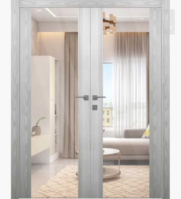 Avon 202 Clear Vetro Ribeira Ash Modern Interior Double Swing Doors by Belldinni