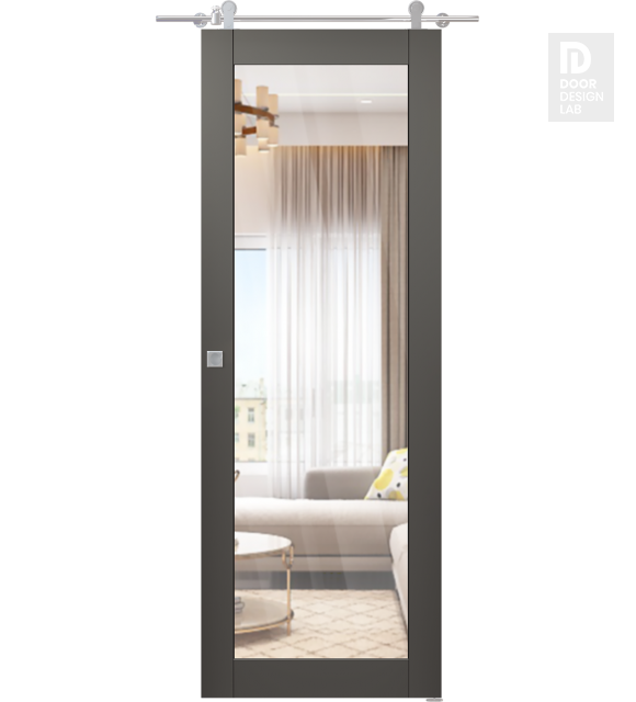 Avon 207 Clear Vetro Gray Matte Modern Interior Barn Door by Belldinni