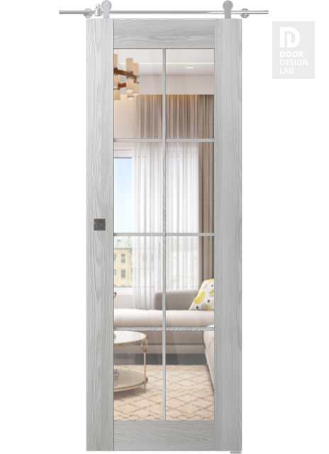 Avon 4 Lite Clear Vetro Ribeira Ash Modern Interior Barn Door by Belldinni