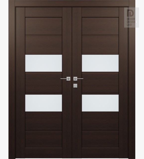 Dessa Vetro provides 4 square panels with 2 lites of 9 1/8" width divided by double lock rail. Panels are made from MDF to provide privacy and reduce sound transmission through your home. Engineered stiles and rails inside the pine frame create strong and sturdy door.