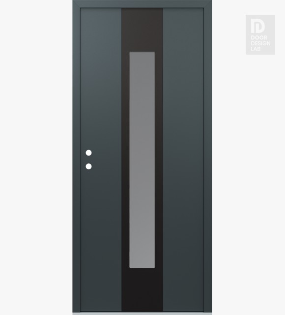 Modern Steel Front Door DIAMOND A1 36" X 80" ANTHRACITE/ANTHRACITE FROSTED GLASS PANEL BLACK LHI