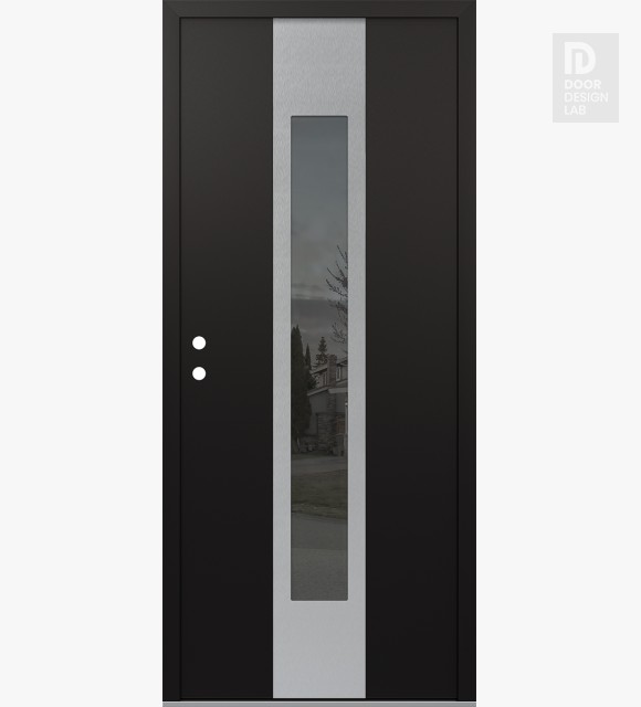 Modern Steel Front Door DIAMOND A1 36" X 80" BLACK/BLACK MIRRORED GLASS PANEL STAINLESS STEEL LHI