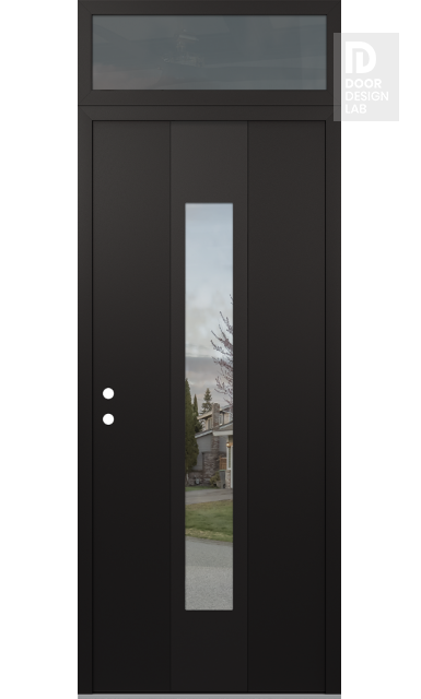 Modern Steel Front Door DIAMOND A1 36" X 96" BLACK/BLACK CLEAR GLASS PANEL BLACK LHI WITH TRANSOM MIRRORED GLASS
