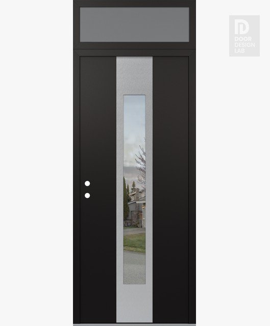 Modern Steel Front Door DIAMOND A1 36" X 96" BLACK/BLACK CLEAR GLASS PANEL STAINLESS STEEL LHI WITH TRANSOM FROSTED GLASS