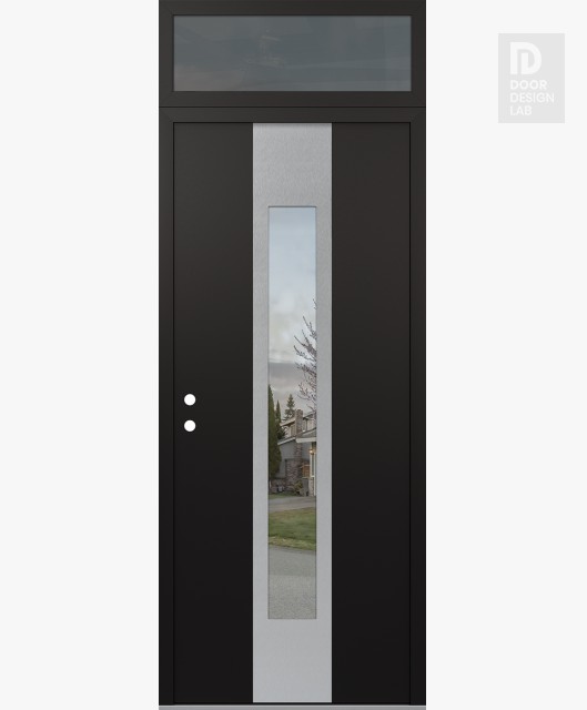 Modern Steel Front Door DIAMOND A1 36" X 96" BLACK/BLACK CLEAR GLASS PANEL STAINLESS STEEL LHI WITH TRANSOM MIRRORED GLASS