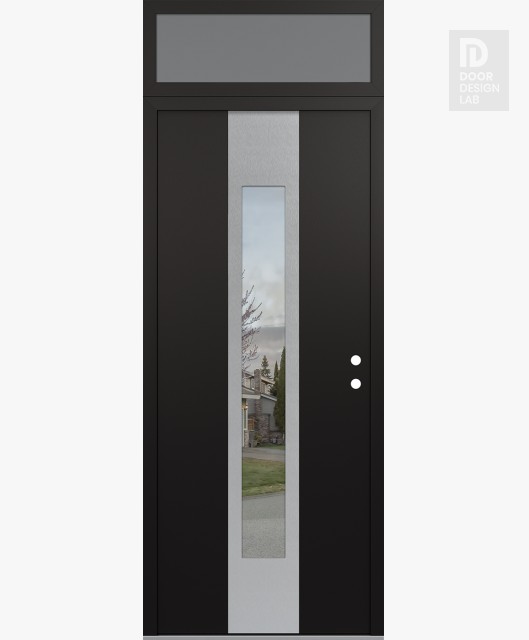 Modern Steel Front Door DIAMOND A1 36" X 96" BLACK/BLACK CLEAR GLASS PANEL STAINLESS STEEL RHI WITH TRANSOM FROSTED GLASS