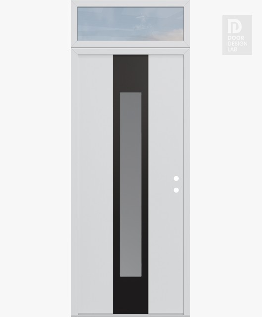 Modern Steel Front Door DIAMOND A1 36" X 96" BLACK/WHITE FROSTED GLASS PANEL BLACK RHI WITH TRANSOM CLEAR GLASS