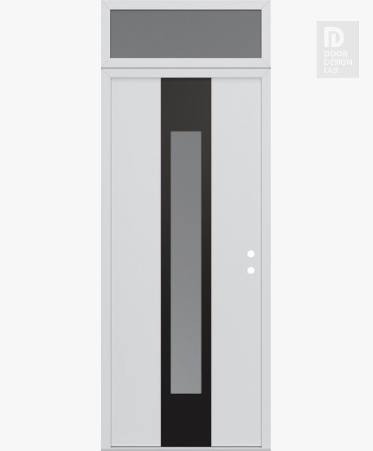 Modern Steel Front Door DIAMOND A1 36" X 96" BLACK/WHITE FROSTED GLASS PANEL BLACK RHI WITH TRANSOM FROSTED GLASS