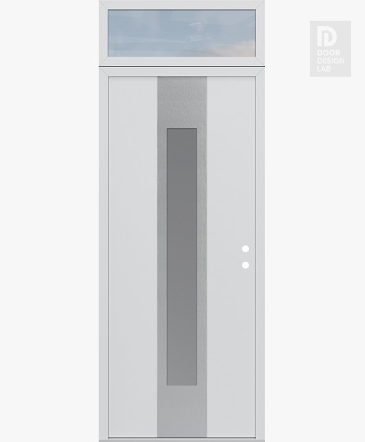 Modern Steel Front Door DIAMOND A1 36" X 96" BLACK/WHITE FROSTED GLASS PANEL STAINLESS STEEL RHI WITH TRANSOM CLEAR GLASS