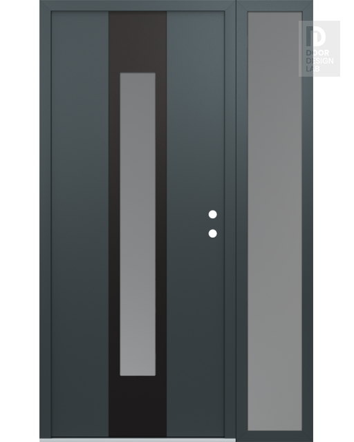 Modern Steel Front Door DIAMOND A1 48" X 80" ANTHRACITE/ANTHRACITE FROSTED GLASS PANEL BLACK RHI WITH SIDELITE FROSTED GLASS