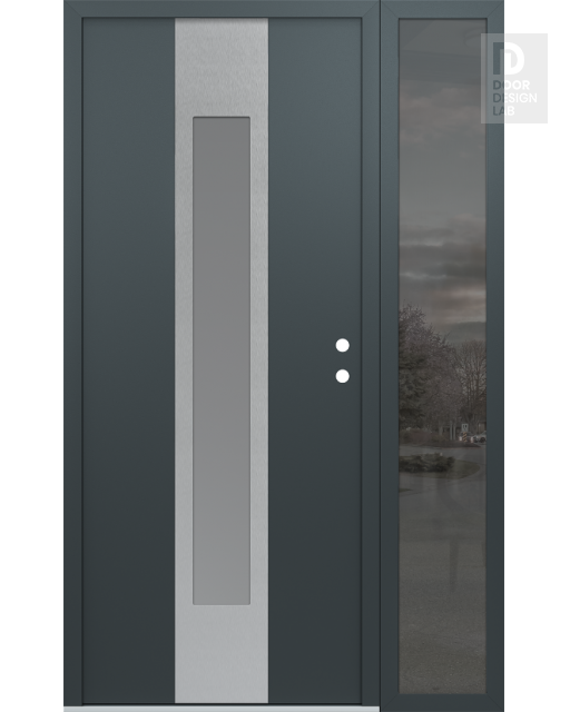 Modern Steel Front Door DIAMOND A1 48" X 80" ANTHRACITE/ANTHRACITE FROSTED GLASS PANEL STAINLESS STEEL RHI WITH SIDELITE MIRRORED GLASS