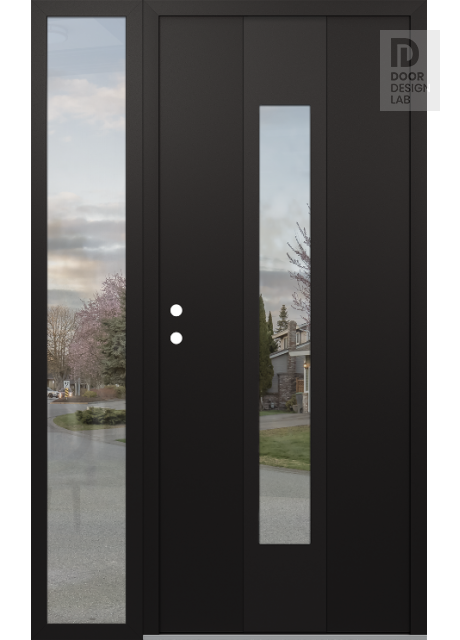 Modern Steel Front Door DIAMOND A1 48" X 80" BLACK/BLACK CLEAR GLASS PANEL BLACK LHI WITH SIDELITE CLEAR GLASS