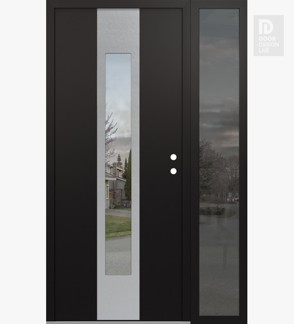 Modern Steel Front Door DIAMOND A1 48" X 80" BLACK/BLACK CLEAR GLASS PANEL STAINLESS STEEL RHI WITH SIDELITE MIRRORED GLASS