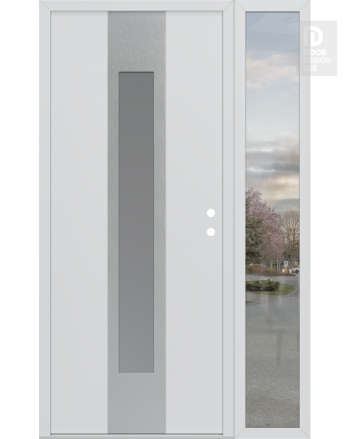 Modern Steel Front Door DIAMOND A1 48" X 80" BLACK/WHITE FROSTED GLASS PANEL STAINLESS STEEL RHI WITH SIDELITE CLEAR GLASS