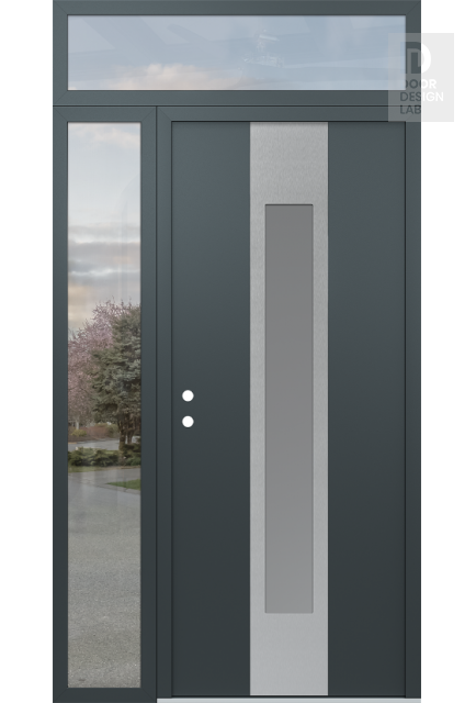 Modern Steel Front Door DIAMOND A1 48" X 96" ANTHRACITE/ANTHRACITE FROSTED GLASS PANEL STAINLESS STEEL LHI WITH SIDELITE AND TRANSOM CLEAR GLASS