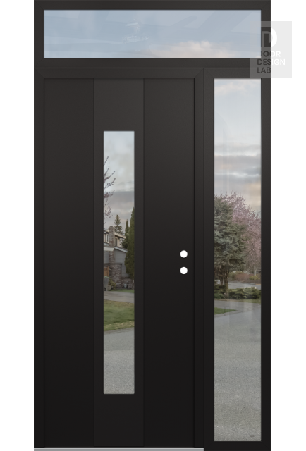Modern Steel Front Door DIAMOND A1 48" X 96" BLACK/BLACK CLEAR GLASS PANEL BLACK RHI WITH SIDELITE AND TRANSOM CLEAR GLASS