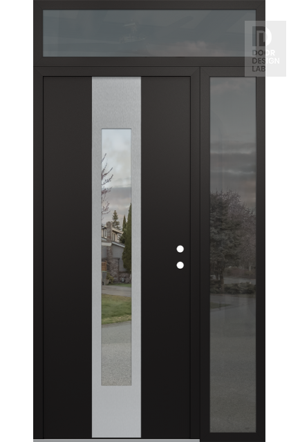 Modern Steel Front Door DIAMOND A1 48" X 96" BLACK/BLACK CLEAR GLASS PANEL STAINLESS STEEL RHI WITH SIDELITE AND TRANSOM MIRRORED GLASS