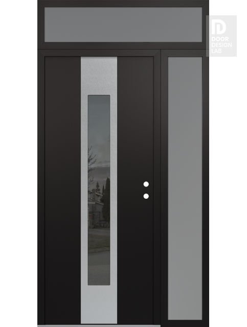 Modern Steel Front Door DIAMOND A1 48" X 96" BLACK/BLACK MIRRORED GLASS PANEL STAINLESS STEEL RHI WITH SIDELITE AND TRANSOM FROSTED GLASS
