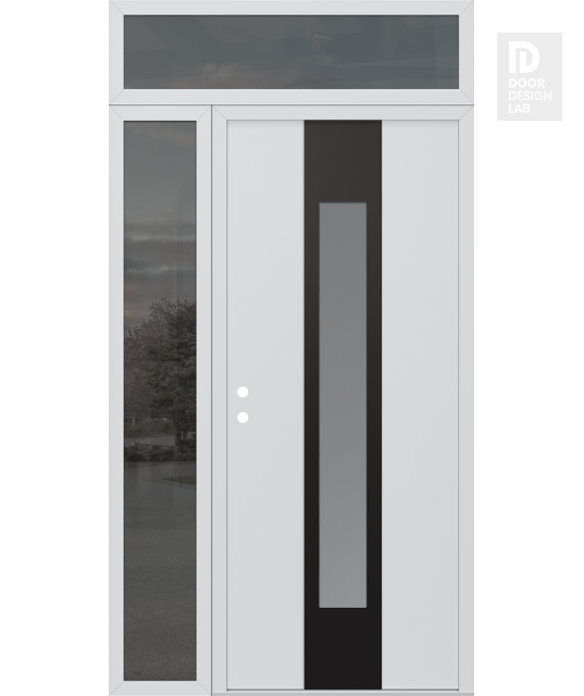 Modern Steel Front Door DIAMOND A1 48" X 96" BLACK/WHITE FROSTED GLASS PANEL BLACK LHI WITH SIDELITE AND TRANSOM MIRRORED GLASS