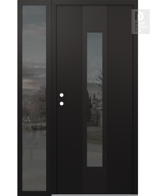 Modern Steel Front Door DIAMOND A1 50" X 80" BLACK/BLACK MIRRORED GLASS PANEL BLACK LHI WITH SIDELITE MIRRORED GLASS