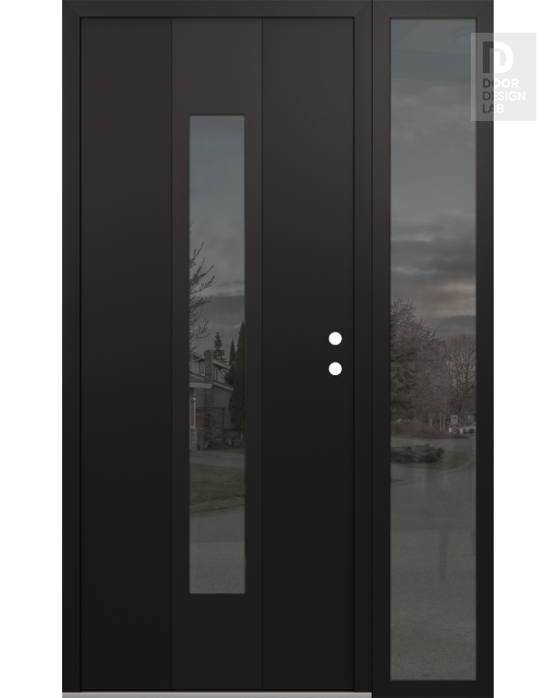 Modern Steel Front Door DIAMOND A1 50" X 80" BLACK/BLACK MIRRORED GLASS PANEL BLACK RHI WITH SIDELITE MIRRORED GLASS