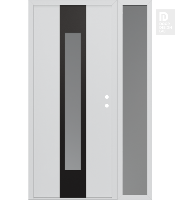 Modern Steel Front Door DIAMOND A1 50" X 80" BLACK/WHITE FROSTED GLASS PANEL BLACK RHI WITH SIDELITE FROSTED GLASS