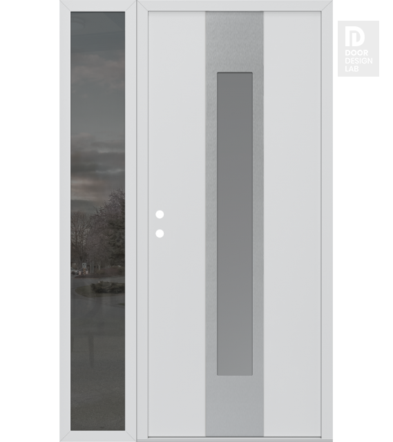Modern Steel Front Door DIAMOND A1 50" X 80" BLACK/WHITE FROSTED GLASS PANEL STAINLESS STEEL LHI WITH SIDELITE MIRRORED GLASS
