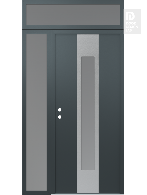 Modern Steel Front Door DIAMOND A1 50" X 96" ANTHRACITE/ANTHRACITE FROSTED GLASS PANEL STAINLESS STEEL LHI WITH SIDELITE AND TRANSOM FROSTED GLASS
