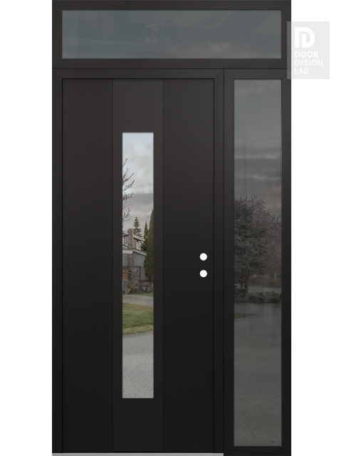 Modern Steel Front Door DIAMOND A1 50" X 96" BLACK/BLACK CLEAR GLASS PANEL BLACK RHI WITH SIDELITE AND TRANSOM MIRRORED GLASS