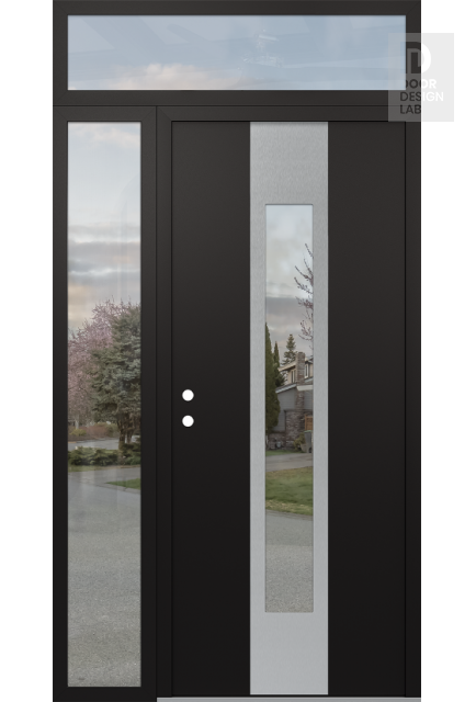 Modern Steel Front Door DIAMOND A1 50" X 96" BLACK/BLACK CLEAR GLASS PANEL STAINLESS STEEL LHI WITH SIDELITE AND TRANSOM CLEAR GLASS