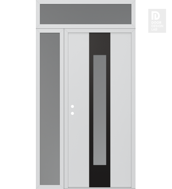 Modern Steel Front Door DIAMOND A1 50" X 96" BLACK/WHITE FROSTED GLASS PANEL BLACK LHI WITH SIDELITE AND TRANSOM FROSTED GLASS