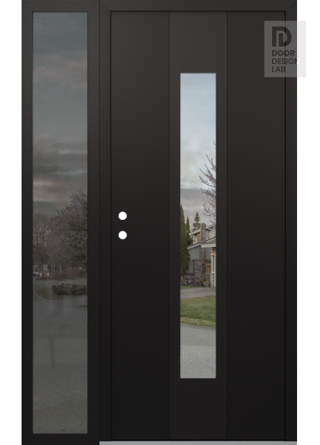 Modern Steel Front Door DIAMOND A1 52" X 80" BLACK/BLACK CLEAR GLASS PANEL BLACK LHI WITH SIDELITE MIRRORED GLASS