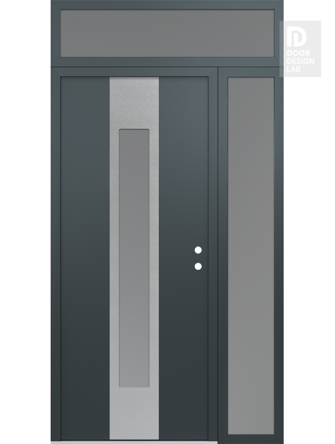 Modern Steel Front Door DIAMOND A1 52" X 96" ANTHRACITE/ANTHRACITE FROSTED GLASS PANEL STAINLESS STEEL RHI WITH SIDELITE AND TRANSOM FROSTED GLASS