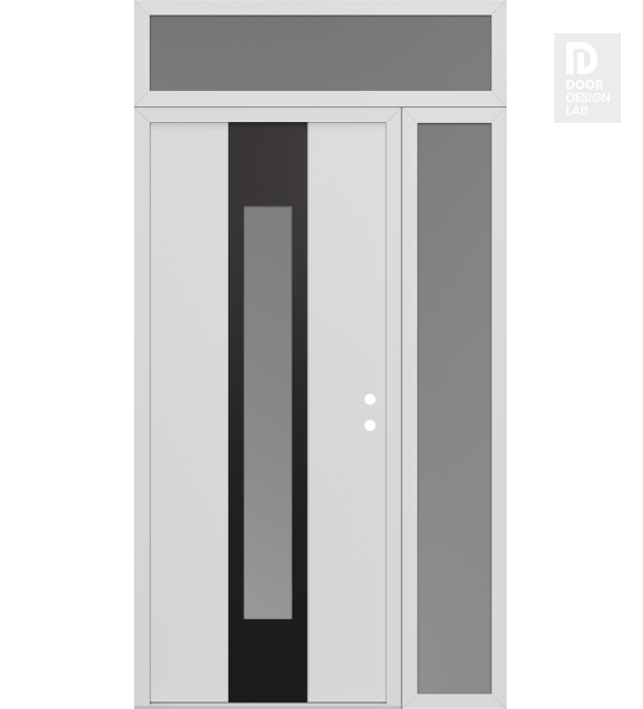 Modern Steel Front Door DIAMOND A1 52" X 96" BLACK/WHITE FROSTED GLASS PANEL BLACK RHI WITH SIDELITE AND TRANSOM FROSTED GLASS