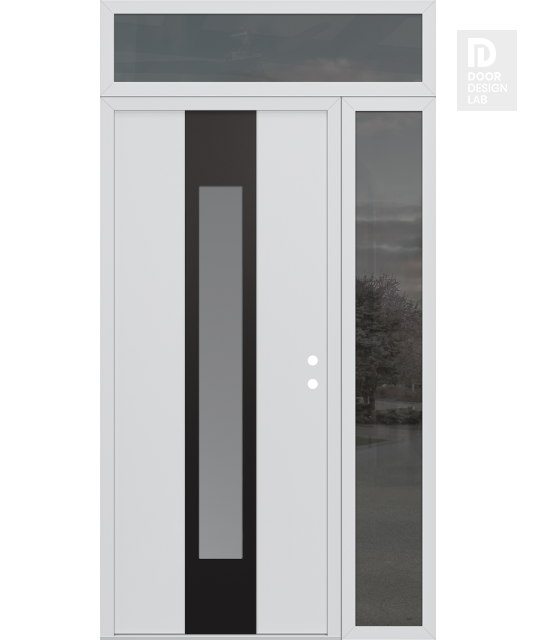 Modern Steel Front Door DIAMOND A1 52" X 96" BLACK/WHITE FROSTED GLASS PANEL BLACK RHI WITH SIDELITE AND TRANSOM MIRRORED GLASS