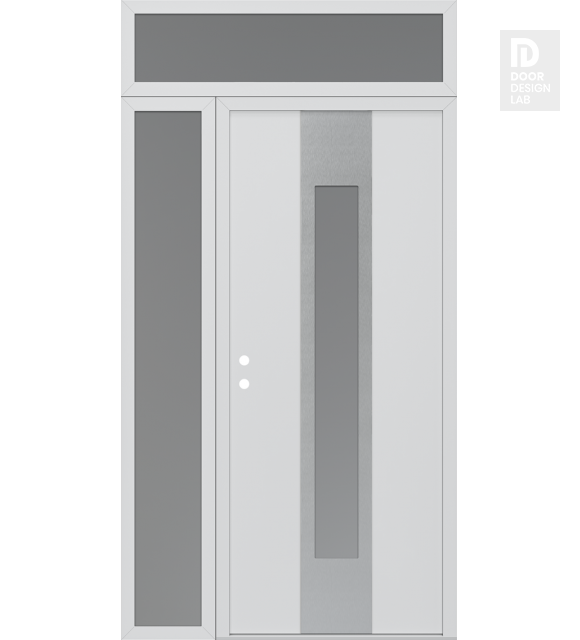 Modern Steel Front Door DIAMOND A1 52" X 96" BLACK/WHITE FROSTED GLASS PANEL STAINLESS STEEL LHI WITH SIDELITE AND TRANSOM FROSTED GLASS