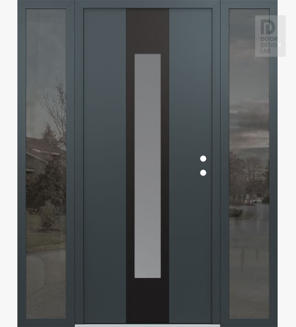 Modern Steel Front Door DIAMOND A1 60" X 80" ANTHRACITE/ANTHRACITE FROSTED GLASS PANEL BLACK RHI WITH 2 SIDELITES MIRRORED GLASS