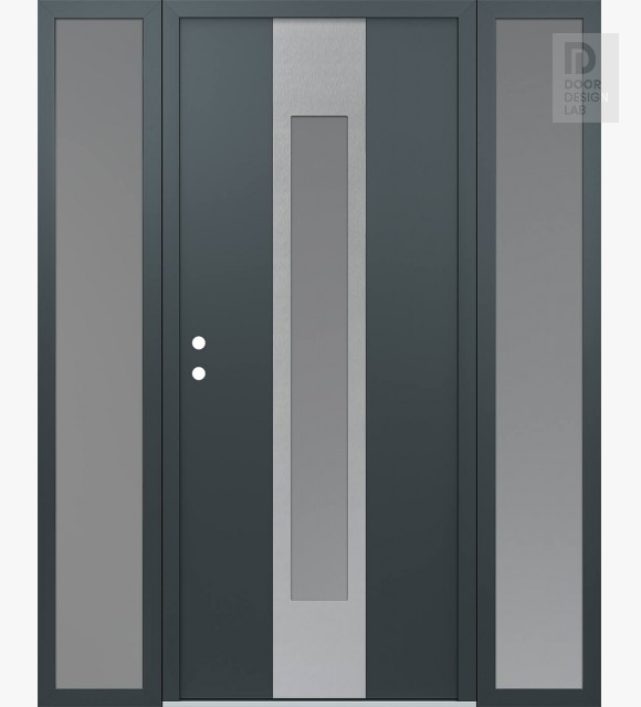 Modern Steel Front Door DIAMOND A1 60" X 80" ANTHRACITE/ANTHRACITE FROSTED GLASS PANEL STAINLESS STEEL LHI WITH 2 SIDELITES FROSTED GLASS