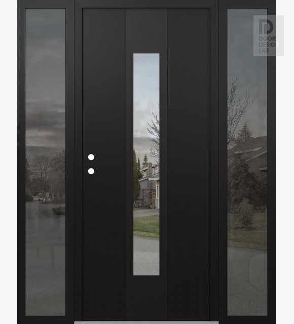 Modern Steel Front Door DIAMOND A1 60" X 80" BLACK/BLACK CLEAR GLASS PANEL BLACK LHI WITH 2 SIDELITES MIRRORED GLASS