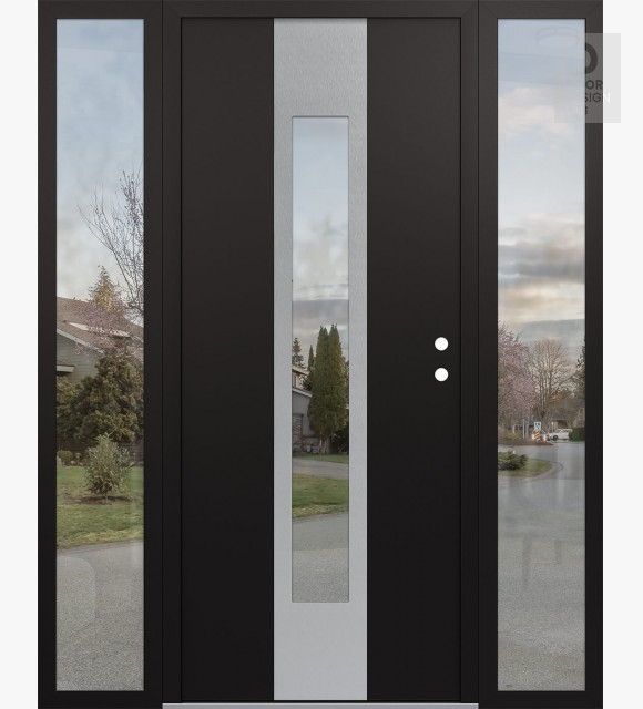 Modern Steel Front Door DIAMOND A1 60" X 80" BLACK/BLACK CLEAR GLASS PANEL STAINLESS STEEL RHI WITH 2 SIDELITES CLEAR GLASS