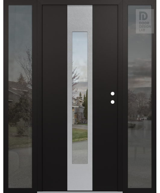 Modern Steel Front Door DIAMOND A1 60" X 80" BLACK/BLACK CLEAR GLASS PANEL STAINLESS STEEL RHI WITH 2 SIDELITES MIRRORED GLASS