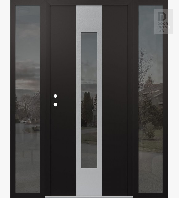 Modern Steel Front Door DIAMOND A1 60" X 80" BLACK/BLACK MIRRORED GLASS PANEL STAINLESS STEEL LHI WITH 2 SIDELITES MIRRORED GLASS