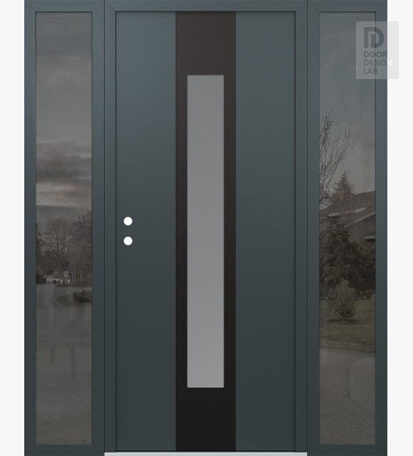 Modern Steel Front Door DIAMOND A1 64" X 80" ANTHRACITE/ANTHRACITE FROSTED GLASS PANEL BLACK LHI WITH 2 SIDELITES MIRRORED GLASS
