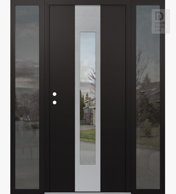 Modern Steel Front Door DIAMOND A1 64" X 80" BLACK/BLACK CLEAR GLASS PANEL STAINLESS STEEL LHI WITH 2 SIDELITES MIRRORED GLASS