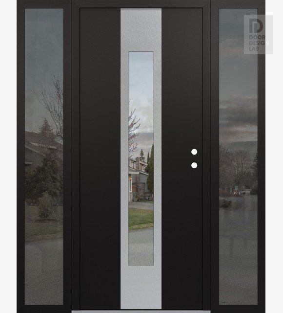 Modern Steel Front Door DIAMOND A1 64" X 80" BLACK/BLACK CLEAR GLASS PANEL STAINLESS STEEL RHI WITH 2 SIDELITES MIRRORED GLASS